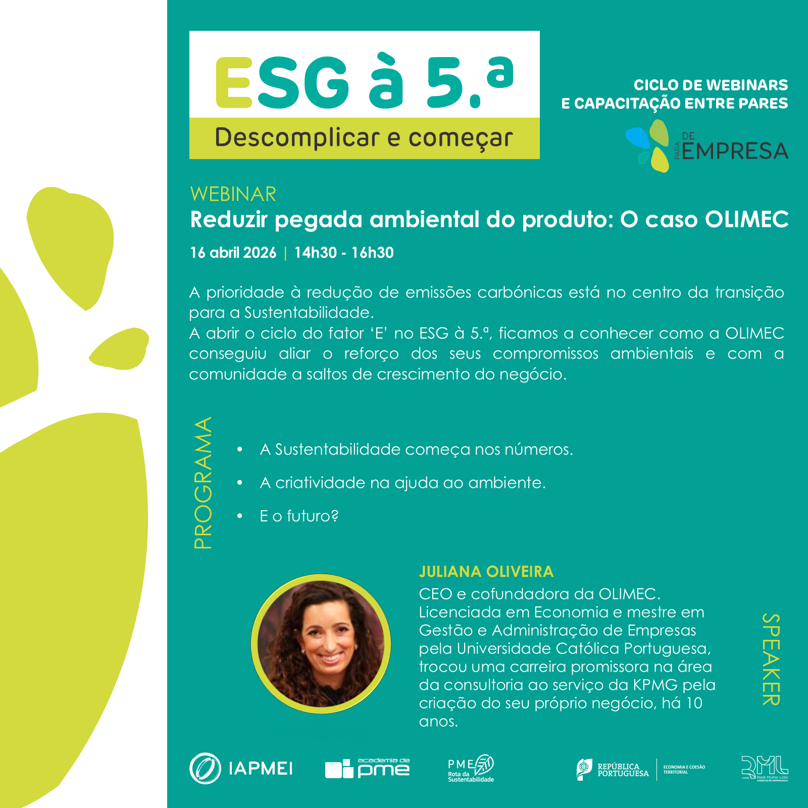 ESG à 5.ª | Webinar ‘Reduzir pegada ambiental do produto: O caso OLIMEC’