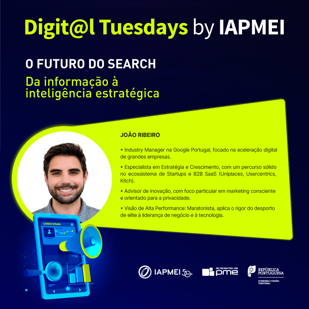 Realiza-se no dia 31 de março mais um webinar integrado na iniciativa da Academia de PME do IAPMEI, Digit@l Tuesdays, desta vez com o tema "O Futuro do Search: da informação à inteligência estratégica".