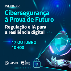 Realiza-se no dia 17 de outubro o webinar "Cibersegurança à prova de futuro: Regulação e IA para a resiliência digital", uma iniciativa da Academia de PME do IAPMEI, integrada no Mês Europeu da Cibersegurança.