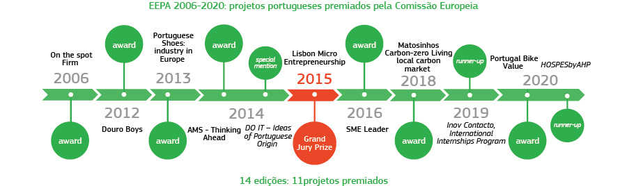 Portugal tem um historial vencedor na final europeia dos European Enterprise Promotion Awards. Ao longo das 14 edições, as várias iniciativas premiadas pela Comissão Europeia viram os seus projetos ganhar visibilidade e prestígio, não só a nível nacional, como também em toda a Europa.